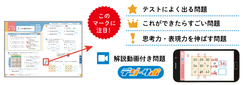 重要なポイントとなる問題や、特別な力をつける問題にはマークをつけているので一目でわかります。