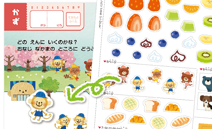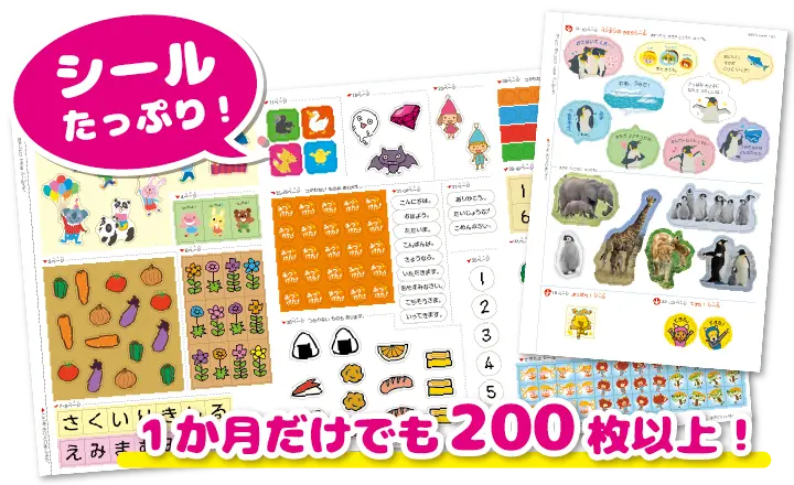 幼児ポピーでは、学習を進める中でシール貼りが楽しめます。ポピーのシールは手先の発達を考え、剥がしやすさにも工夫が施されており、さらに何度でも貼ったりはがしたりできる再剥離タイプで失敗しても安心です。楽しく学ぶ中で、集中力や指先の器用さを自然に育めます。