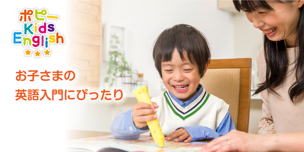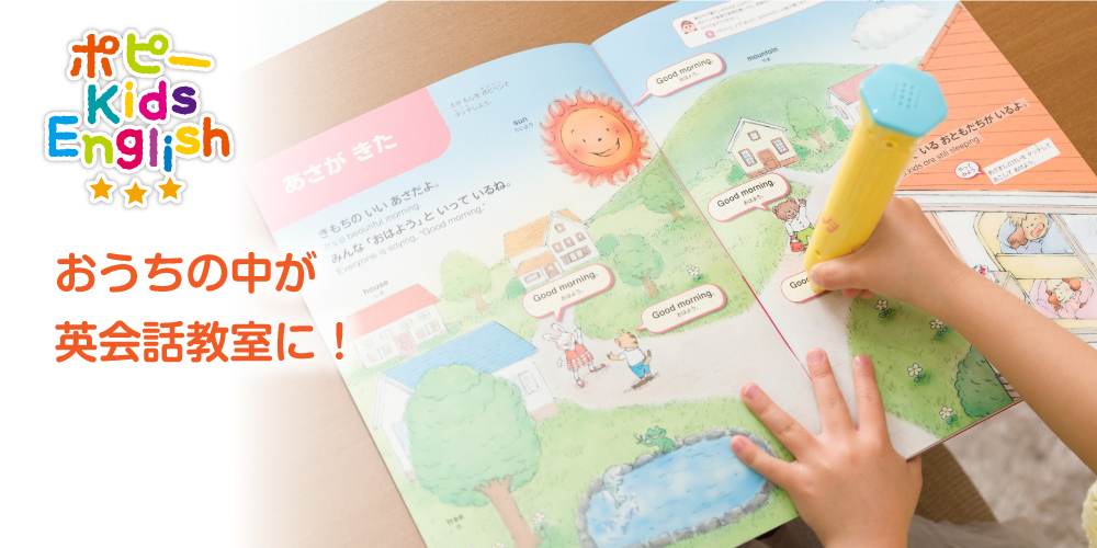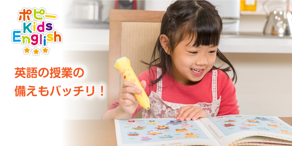 ポピペン(音声ペン)で絵や文字をタッチすると、英語の単語や表現が聞けます。自分でタッチしたものを見ながら英語を聞くことによって、絵や文字と、英語の音の結びつきがしっかりできます。