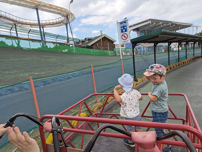 柵の前のお子さんたちかと思ったら、こんな変わり自転車も! うちも連れていきたいけど、近辺にお住いのかたがうらやましいです。