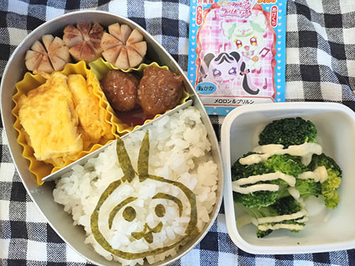 遠足のときに作る子どもたちのお弁当、キャラ弁がいいと言われるけど、作るのがすごく苦手です。なので、かわいいキャラは作れないけど、まっくろくろすけやパンダを作って、なんとか喜んでもらえてます(^ ^)。もっとがんばらなきゃ、と思う気持ちもありますが、なかなか難しいですね。