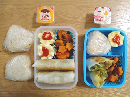 4年前、産後間もない時期に上の子の親子遠足があったとき、長男の喜ぶ顔が見たいと作ったお弁当です。あわただしく、家にあった新じゃがとスナップエンドウとウインナーをカレーパウダーで味付けして、春巻きにして揚げたのを記憶しています。
