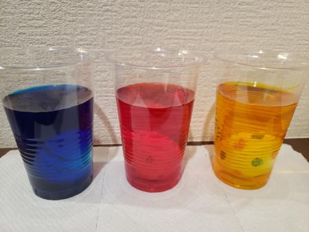 ※食紅はとても色が付きやすいので、汚れてもいい容器や服で行ってください。