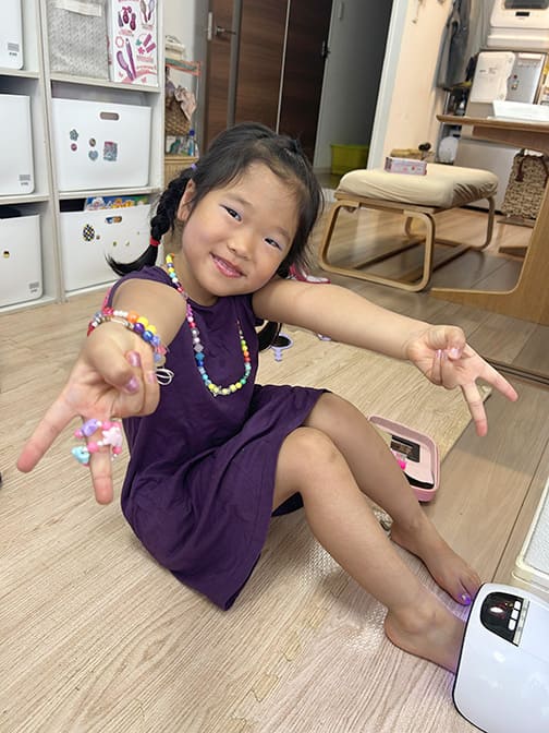 最近、娘(4歳)は、「お出かけするよ!」と声をかけると、自分でお着替え&なんと!お化粧(もちろん子ども向けの商品で)までして、おめかししています。指輪やブレスレットなど、アクセサリーもたくさんつけて。多忙でおしゃれを忘れかけていた私に、刺激を与えてくれる存在になりました。やっぱり女子は何歳になってもおしゃれを楽しまないと損だよね(^ ^)