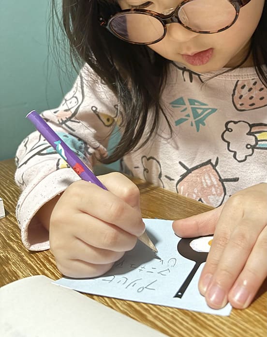 ひらがなを読んだり書いたりが楽しい4歳の娘。サンタさんへの手紙を書いていると、ひらがなの「ほ」の右部分が「ま」になっていました。「上は飛び出さないよ」と教えると、「もぉ、私ったら、賢くないんだから!」と言いながら、消しゴムを使って訂正。賢いなんて言葉、どこで覚えたんだろう?とクスッと笑っちゃう日常のひとコマでした。